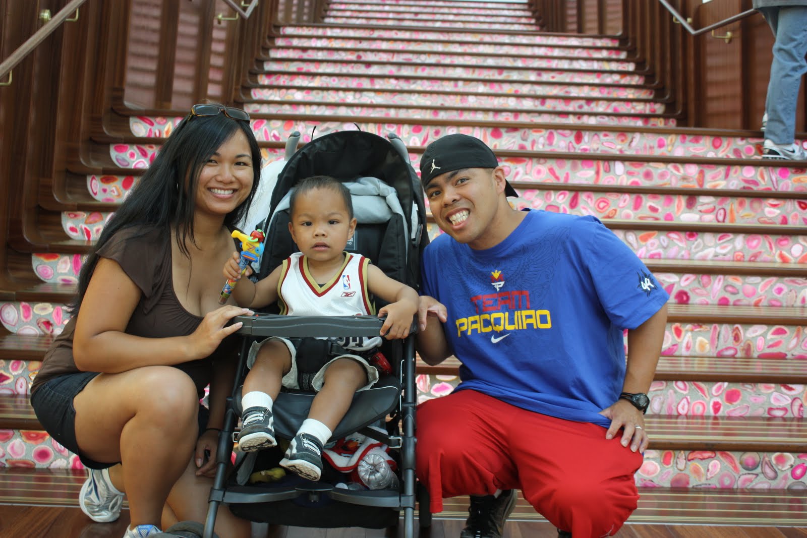 From Thursday May 20th thru Monday May 24th, we brought Derek to Las Vegas for the first time. I was chosen by my work to attend the annual ICSC Real Estate Conference for retail. Besides his first Vegas trip, it was first airplane ride. We stayed at "our Vegas Condo" The Signiture at MGM from Thursday thru Saturday. If you ever go to Vegas, you must stay at this place at least once in your lifetime. For the first three days, we hit up The Signature's lazy river. Even with the college spring break & bachelor/bachlorette atmosphere we all enjoyed the lazy river. We also hit up the M&M store, where Derek got a blue M&M pillow and took a picture with a green M&M. From Saturday night thru Monday, we stayed stayed at Bally's (Courtesy of my work. They also paid for my flight to Vegas and back.) Our view was amazing! We could see the Bellagio water show from our room and had a great view of Paris' Eiffel Tower and hotel. We also did plenty of walking, watching the Bellagio water show from the strip and hit up a few malls, including the Miracle Mile Shops at Planet Hollywood, the Forum Shops at Caeser's and Fashion Mall near Treasure Island. In addition, we took lots of sight-seeing pics during our exploration of the Vegas Strip. A few spots in During this trip, we hit up a total of 6 buffets, including MGM's, Paris (2x), Planet Hollywood, Bellagio and Caeser's buffets. It sounds like a lot of food, but really we each at one or two plates of food and followed Derek around as he explored each buffet setting. Overall, the whole family had a blast!